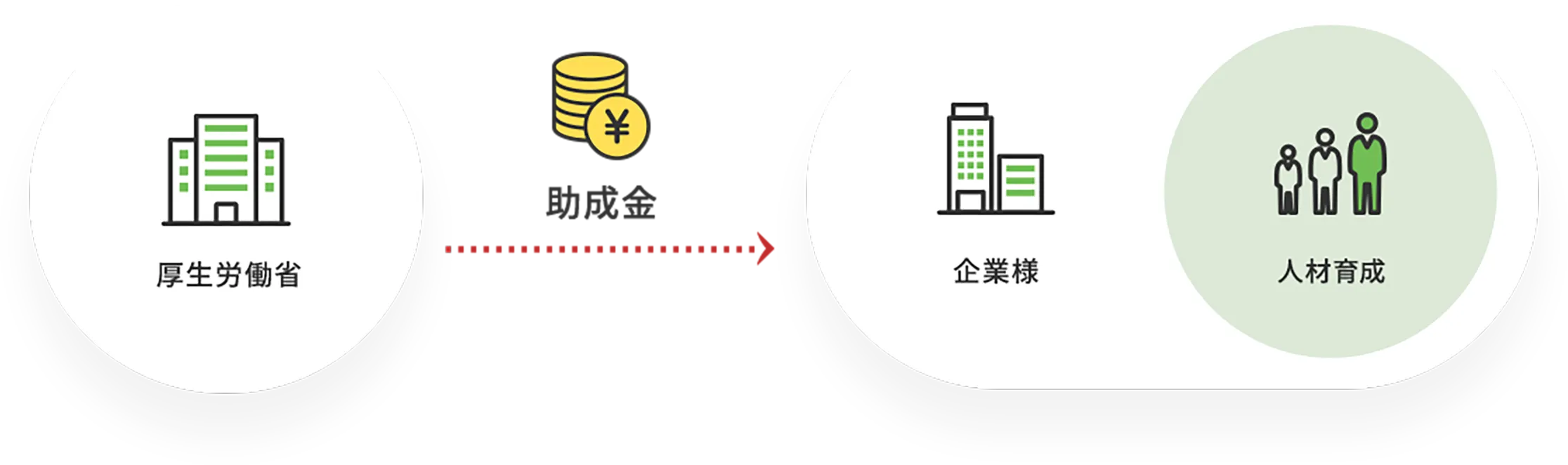 人材開発支援助成金は、企業様が雇用する労働者に対して、職務に関連した専門的な知識及び技能を習得させるための職業訓練等を計画に沿って実施した場合等に、訓練経費や訓練期間中の賃金の一部等を助成する制度です。